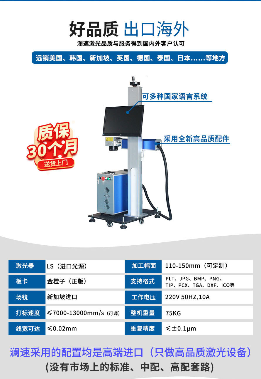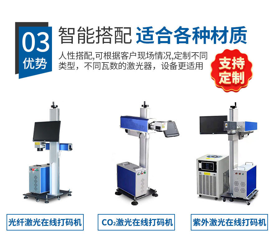 2、在線式飛行激光打標機直接與流水線配合,減少人工成本,操作人員可以避開惡劣生產(chǎn)環(huán)境。